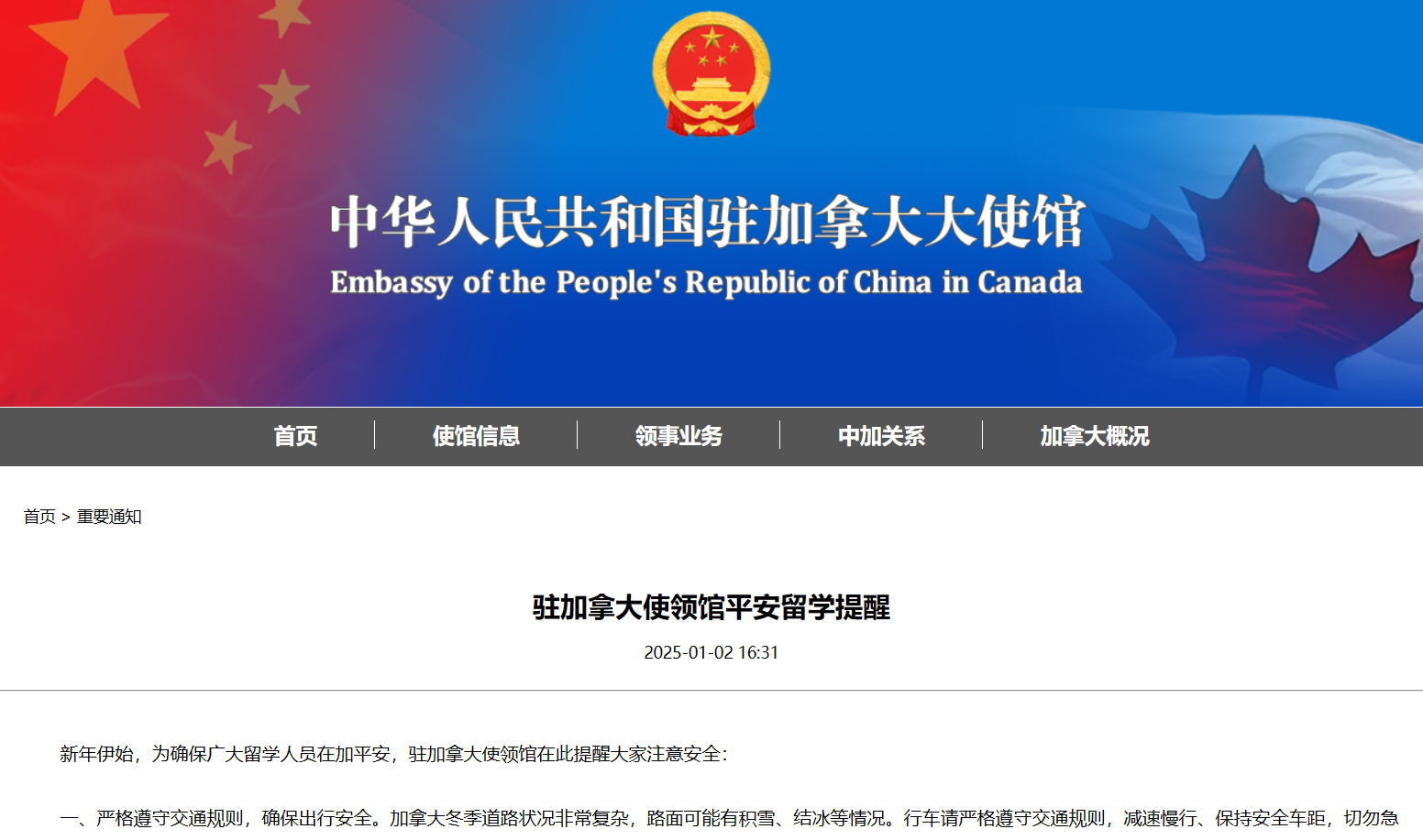 駐加拿大使領(lǐng)館:發(fā)布平安留學(xué)提醒