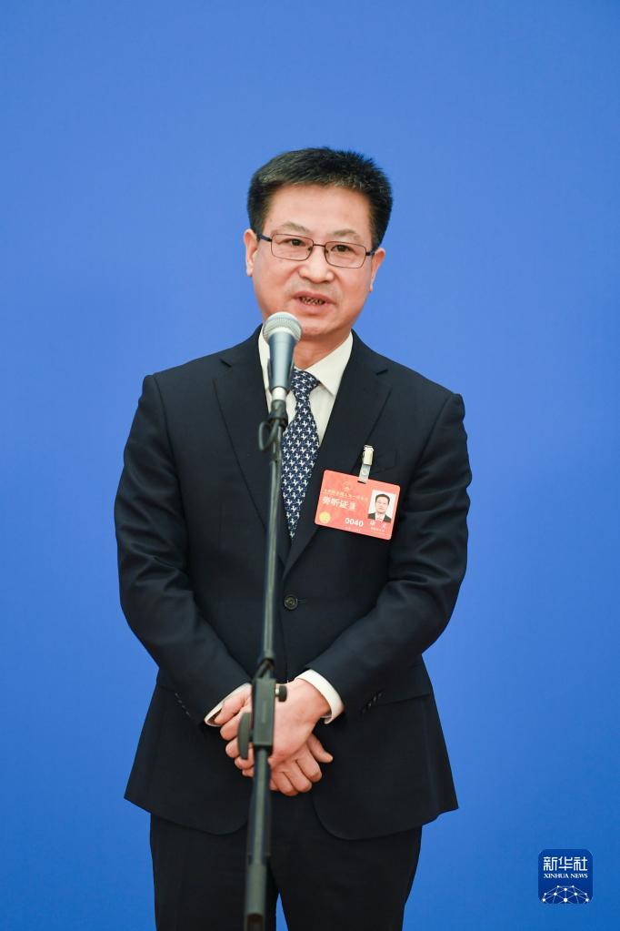 3月12日,第十四屆全國人民代表大會第一次會議舉行第三場“部長通道”采訪活動。這是國家統計局局長康義接受媒體采訪。新華社記者 金皓原 攝