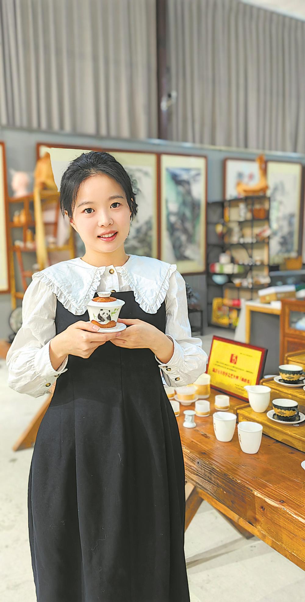 “我手里這兩套‘熊貓蓋碗’竹編,代表的就是年輕人審美趨勢(shì)的變化。”白梓憶左手拿著的一代產(chǎn)品設(shè)計(jì)出自白靜波,瓷器上是一只國(guó)畫(huà)熊貓,藤編的色澤偏暗,年代感十足;右手端著的“熊貓抱竹”竹編蓋碗是迭代出來(lái)的二代產(chǎn)品,極具四川地域特色,設(shè)計(jì)簡(jiǎn)單,兼具雅致與實(shí)用,深受年輕人的青睞。白梓憶告訴記者,為了創(chuàng)作這件作品,她帶領(lǐng)創(chuàng)作團(tuán)隊(duì)10個(gè)人用了近2個(gè)多月的時(shí)間,僅是熊貓的設(shè)計(jì)就前前后后做了30多份設(shè)計(jì)稿。在2024年中國(guó)特色旅游商品大賽暨2024中國(guó)旅游商品大賽中,“熊貓抱竹”竹編蓋碗從3萬(wàn)多件作品中脫穎而出,榮獲金獎(jiǎng)。