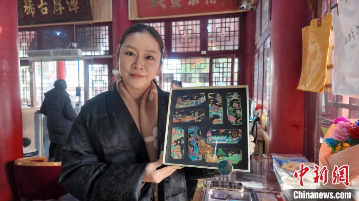 2月24日,婁鳳在三河民俗博物館向記者展示其開發的文創產品。中新社記者 趙強 攝