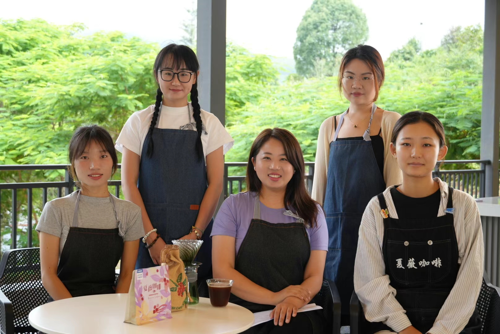 王雪薇為莊園取名“夏薇”,有開花結果的寓意。她的咖啡莊園坐落在離普洱市區不遠的山巒間,開闊的觀景臺抬頭即可見美麗的山景和云朵,在這里除了能品嘗香醇的咖啡,還可以培植咖啡苗、做手繪手工、體驗木版雕刻,學習咖啡研磨沖泡、開展“小小咖啡師”研學,互動參與感十足。