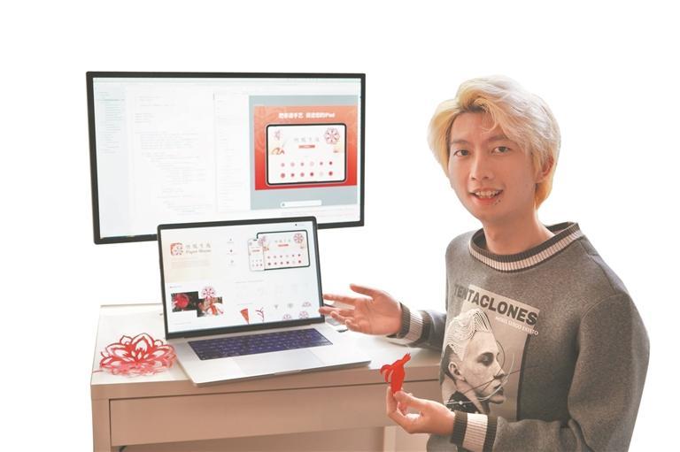 千年技藝在數(shù)字世界重?zé)ㄐ律瑘?zhí)科技為剪,讓傳統(tǒng)與創(chuàng)新交織出新的樂趣。在英國留學(xué)的“00后”泉州小伙洪銘錕利用課余時間,獨立開發(fā)剪窗花APP,能將虛擬的窗花“貼”進現(xiàn)實世界,讓全球朋友們體驗中國非遺文化的魅力。
