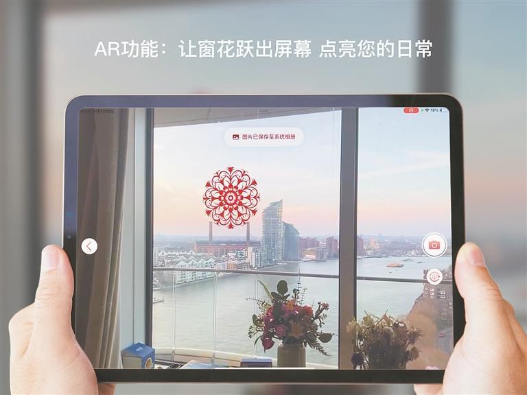 打開這款剪窗花APP,指尖在屏幕上輕劃縮拉,窗花圖形隨即變動,很快中國紅窗花就創(chuàng)作好了,打開攝像頭,做好的虛擬窗花就“貼”在實景上,獨樹一幟的創(chuàng)意讓網(wǎng)友們連連點贊。