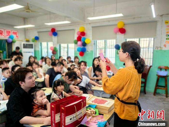 近日,楊雨瀟傳授剪紙技藝。臨海市委宣傳部供圖