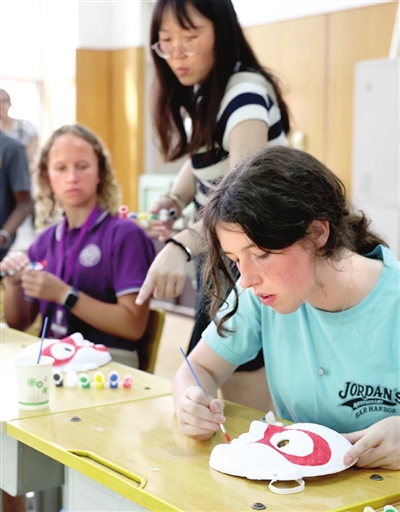 昨天,百余名2025年“漢語橋”青少年來華夏令營營員,在天津藝術職業學院畫臉譜、舞長槍、甩水袖、拉二胡、打快板,感受中國優秀傳統文化的別樣魅力。 記者 姜寶成 攝